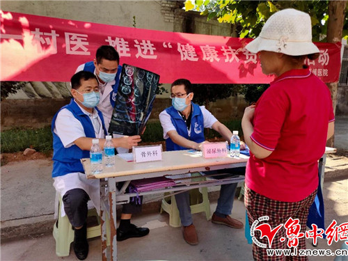 鲁中网·海报新闻6月24日讯(记者 荆睿 见习记者 岳维硕 通讯员 朱凤霞)为积极响应淄博市卫生健康委“老中青专家走基层服务通知”的号召,6月20日上午,在北大医疗淄博医院业务院长李其海的带领下,医务科组织心内科、颈肩腰腿痛诊疗中心、骨外科、眼科、泌尿外科、中医科等10余名专家走进湖田镇商家村进行义诊活动,这里是淄博市第六批“第一村医”,内分泌肾内科杜进娟主治医师的派驻村,同时为她带去了实木中药柜、额温枪、外科口罩、电子血压计、听诊器等慰问物资。